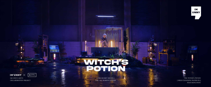 이 제품을 사용하는 소녀는 퇴폐적이고 짙은 화장을 하는 어린 마녀이다. 불량한 태도, 망사스타킹, 피어싱, 강한 메이크업 등을 장착한, 말그대로 홍대 뒷골목에서 마주칠법한 이 빌런 캐릭터는 청순한 공주인척 순진한 왕자를 속이기 위해, 변신용 포션을 만든다. 이 포션이 바로 우리의 제품이며, 그녀의 짙은 메이크업이 오히려 변신 후 모습과 대비되어 제품의 드라마틱한 세정력을 강조한다. 이 컨셉을 가지고 가자, 클라이언트 분들이 묻지도 따지지도 않고 이걸로 가자고 하셨다. 보통은 기획안을 보통 A안 B안 c안 이런식으로 여러 개 가지고 가는데, 이번엔 이 컨셉 하나뿐이었다. 하지만 컨펌라인의 모두가 실제 소비자층인 여성이었고, 다들 착하고 아름다운 컨셉보다 이 컨셉을 좋아했다.