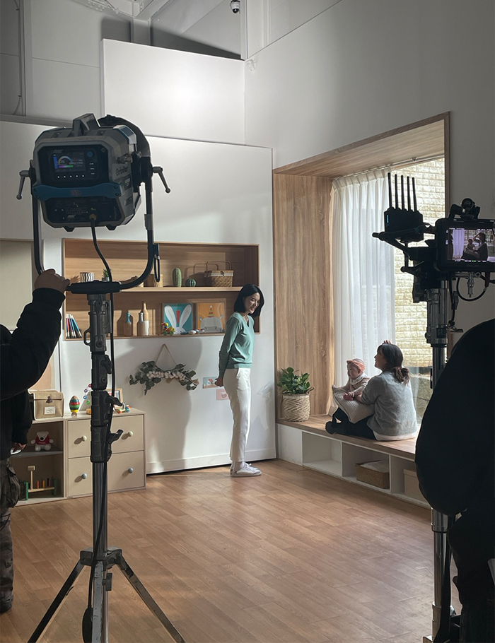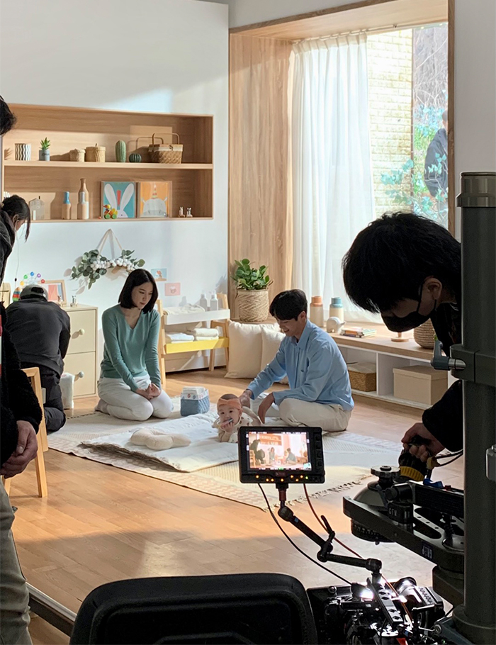 아이 촬영이 아이의 컨디션에 따라 난관에 봉착하는 경우가 많은데, 메인 모델 아이가 울지 않고 낯선 촬영장에서도 잘 웃어줘서 촬영이 순탄하게 진행될 수 있었습니다. 영상 후반 아이를 높게 들어 촬영하며 즐거운 순간을 만들어 아이의 진실한 웃음을 포착할 수 있었습니다. 해당 장면을 썸네일로 지정하여, 브랜드 메세지 전달 및 타깃의 영상 시청 동기로 연결하였습니다.