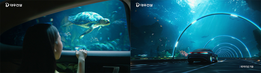 광활한 바다에 지어진 기나긴 대교 위를 승용차 한 대가 시원하게 가로지릅니다. 차량이 어두운 터널에 진입하자 차장 밖을 바라보던 아이의 눈이 휘둥그레집니다. 아이의 시선 끝엔 거대한 바다거북이 형형색색의 물고기 떼와 함께 유유자적 바다 속을 유영을 하고 있습니다. 마치 용궁으로 가는 바닷길 마냥 바다 속이 훤히 보이는 터널을 달리는 차량의 뒷모습을 비춥니다. 이는 해저 48m, 3.7km길이의 거가대교 해저터널 구간 완공으로 세계 최고 수준의 해저 침매터널 시공기술을 입증한 대우건설이 생각하는 머지않은 미래의 LED해저터널 모습입니다.