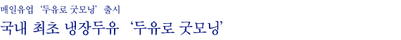 매일유업은 국내 최초로 갓 짜낸 콩의 영양과 신선함을 그대로 담은 냉장두유 ‘두유로 굿모닝’과 ‘두유로 굿모닝’에 현미, 검은쌀, 보리 등 현 대인에게 부족하기 쉬운 7가지 곡물과 식이섬유를 넣어 맛과 영양을 한층 강화한