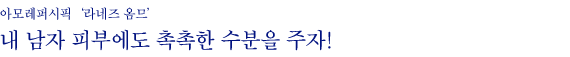수분관리는 꽃미남과 동안을 위한 첫 번째 필수 조건. 라네즈 옴므는 칙칙한 피부 톤, 급감하는 피부 탄력, 주체할 수 없는 스트레스로 지치고 푸석해진 남성 피부 특성에 적합한 최적의 수분관리 솔루션(COACH system)으로 남성들의 피부 자신감을 코치해 준다.