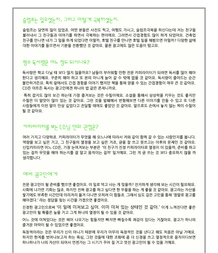 소비자의 마음에 맡기는 진정성 있는 광고 - 이백현ECD