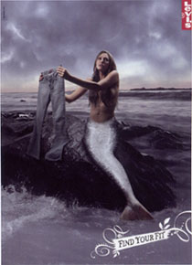 그리고 데코레이션 된 박스 안에는 “Find Your Fit”이라는 카피! 여기서 등장하는 ‘Levi’s’가 광고 속 ‘인어공주’나 ‘켄타우루스’의 것이라면 이것은 그녀들의 두 개의 발로 들과 산을 맘껏 달릴 욕망의 표현이고, 그녀의 마음 속에 애잔함으로 남아있는 어떤 왕자님의 것이라면 그것은 가슴 아픈 그리움을 표현한 것일 것이다. 그것이 욕망이던 그리움이던 그녀가 발견해 들고 있는 Levi’s. 그리고 그 표정들로 미루어 짐작 하건대 그녀가 학수고대 찾고 기다리던 왕자님의 체취가 묻어있는 그리움의 소산물이 아닐까? 그의 Jean을 그녀가 발견한 것이다. 그리고 그것이 욕망이던 그리움이던 Jean으로 표현할 수 있는 영역이 가슴 아픈 멜로(Melodrama)에 까지 이르렀음에 나는 또 신선함을 갖는다.