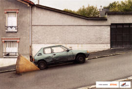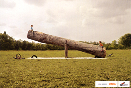 “THINK BIGGER”라는 슬로건이 말해주듯 통 큰 통나무들을 삭둑삭둑 잘라 버리는 능력에서 그 성능의 우수함이 유감없이 발휘된다. 우리의 환경적 정서하고는 다소 차이가 있는 듯 하여(예를 들면, Gardening을 취미로 하거나 자연을 놀이터 삼는 일에 아직은 어색함) 전문적인 공구가 아닌 생활용품으로서의 전동톱은 익숙하지 않으나, 이 광고의 유머러스한 과장 앞에선 우리의 문화와 무관한 즐거움이 느껴진다.